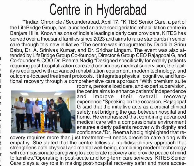 The upgraded facility offers advanced geriatric rehabilitation, post-hospital recovery, dementia care, palliative support, and home care services, further strengthening access to comprehensive, specialised elder care in Hyderabad.